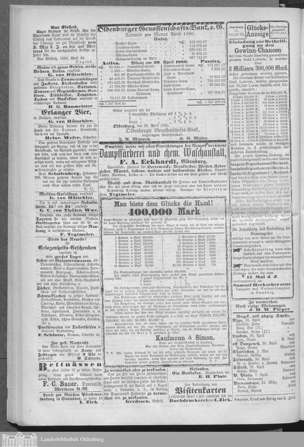 Nachrichten für Stadt und Amt Elsfleth. 1871-1933