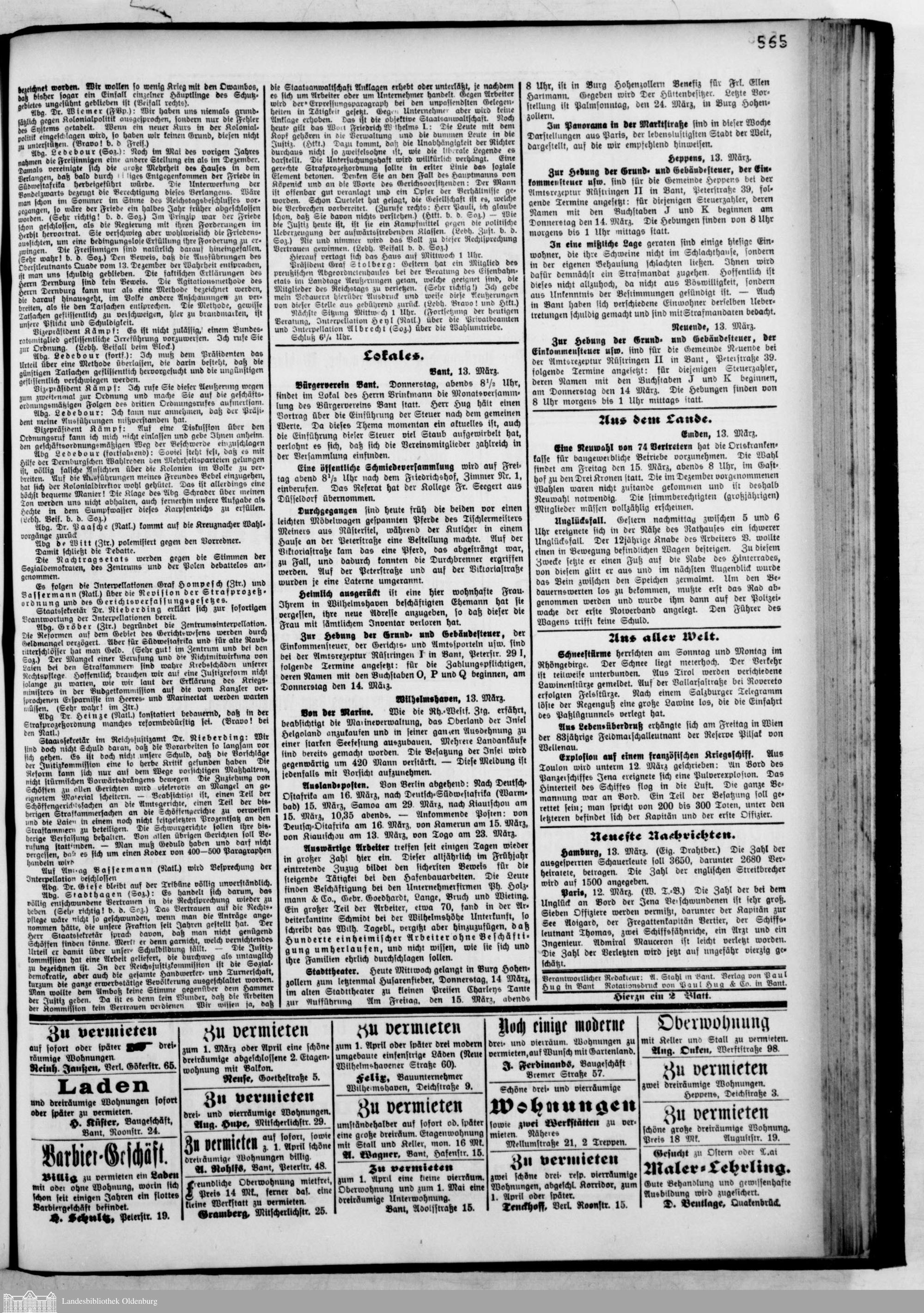 Norddeutsches Volksblatt. 1887-1918