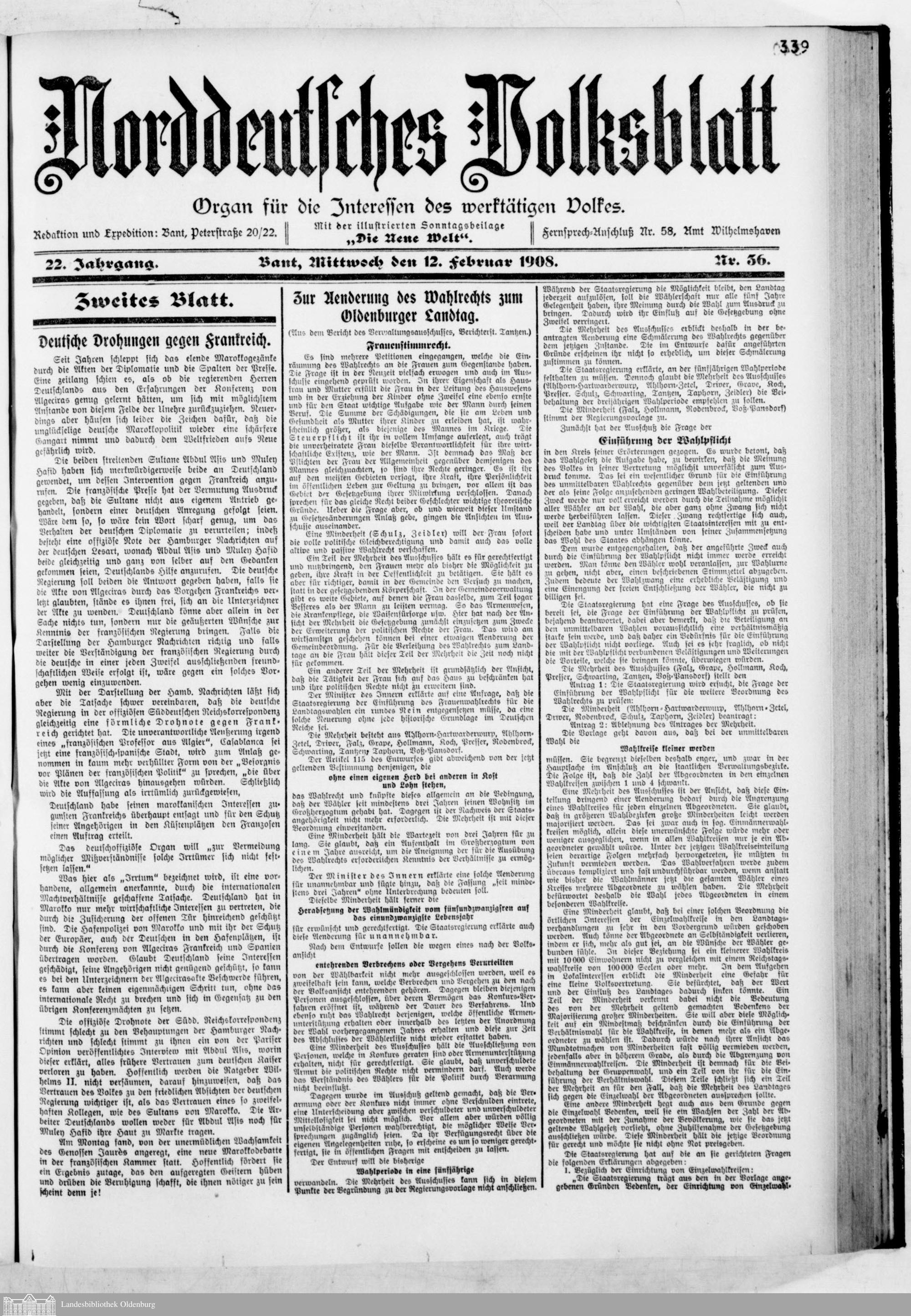 Norddeutsches Volksblatt. 1887-1918