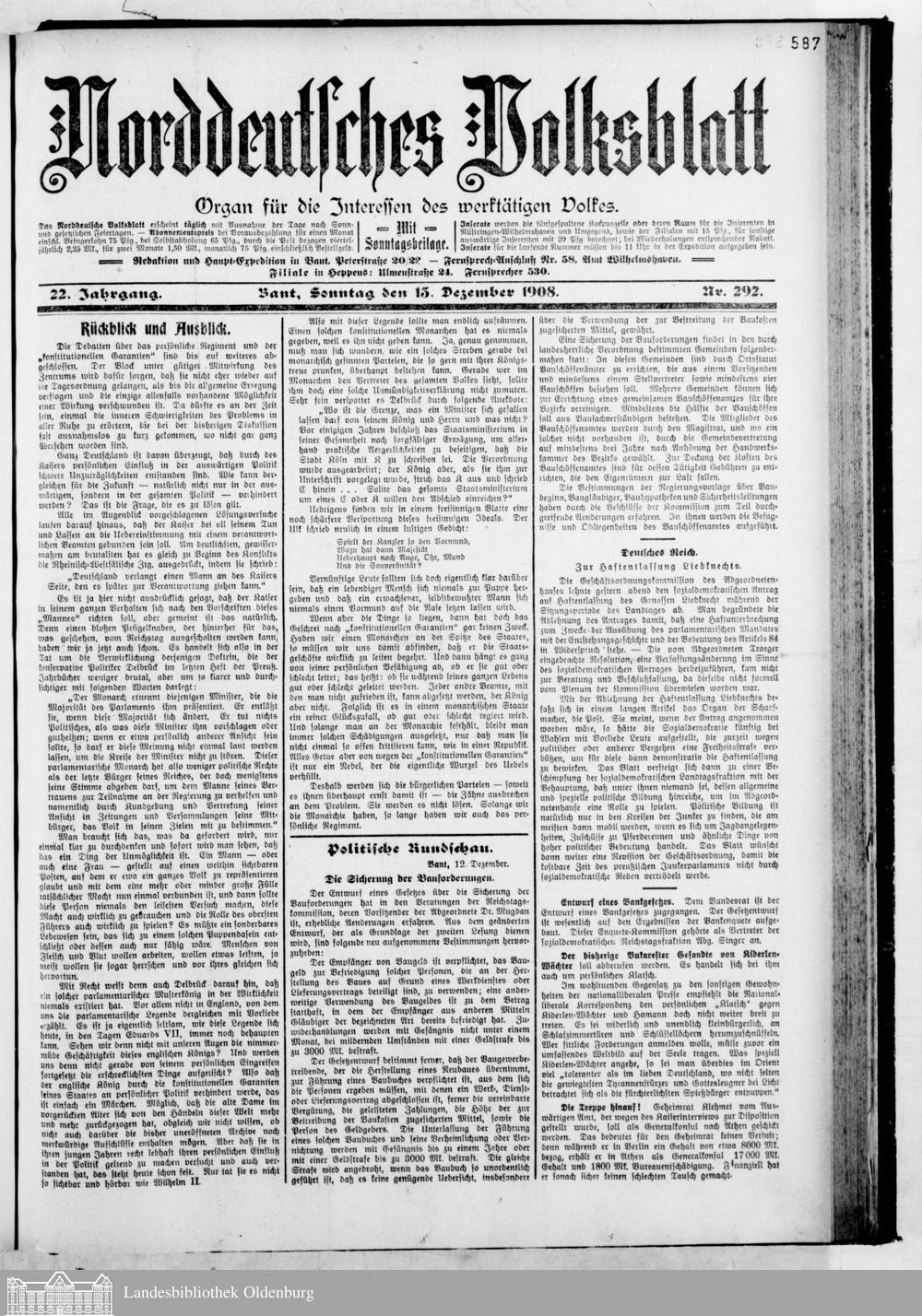 Norddeutsches Volksblatt. 1887-1918