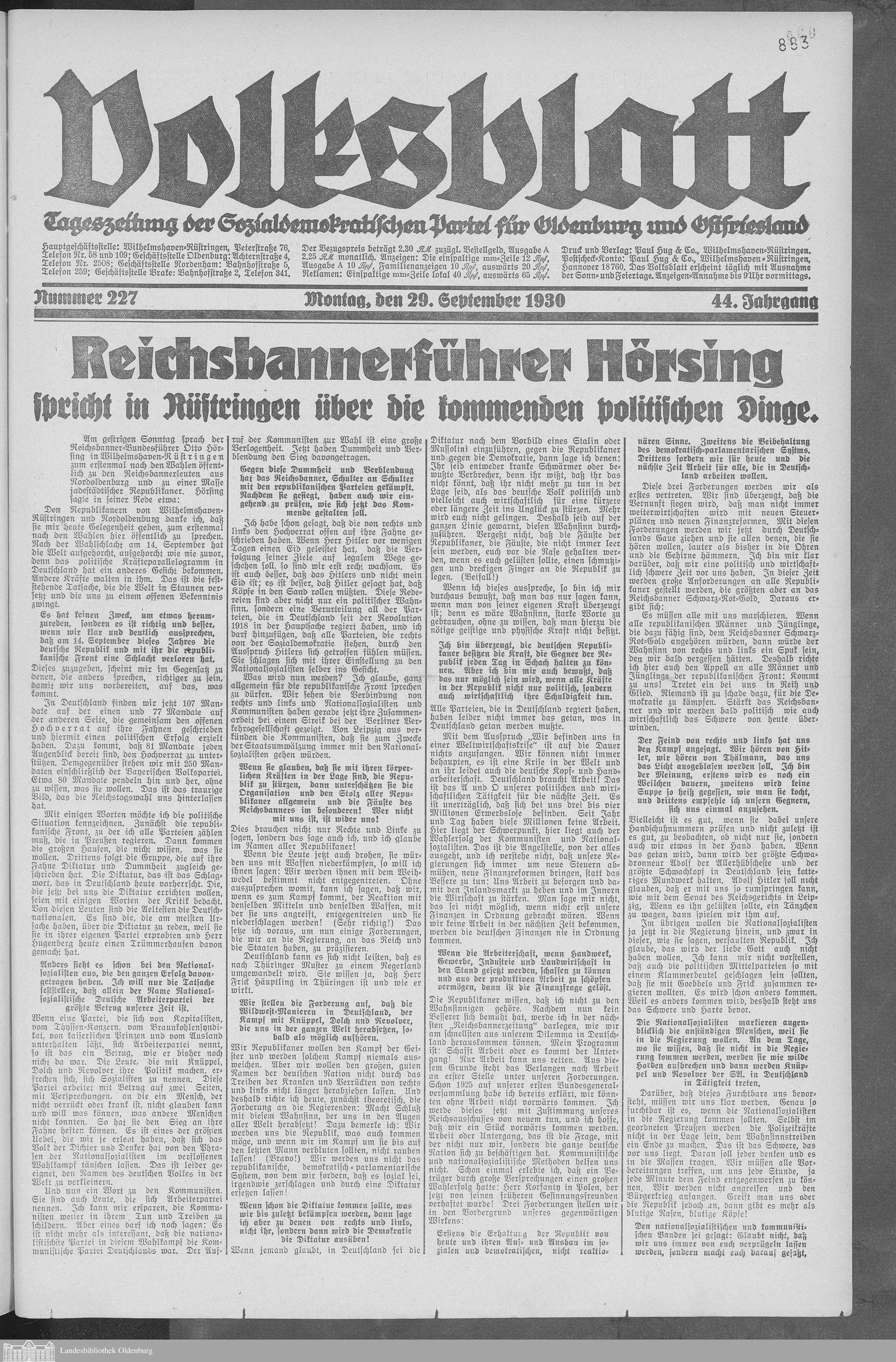 Volksblatt. 1930-1933
