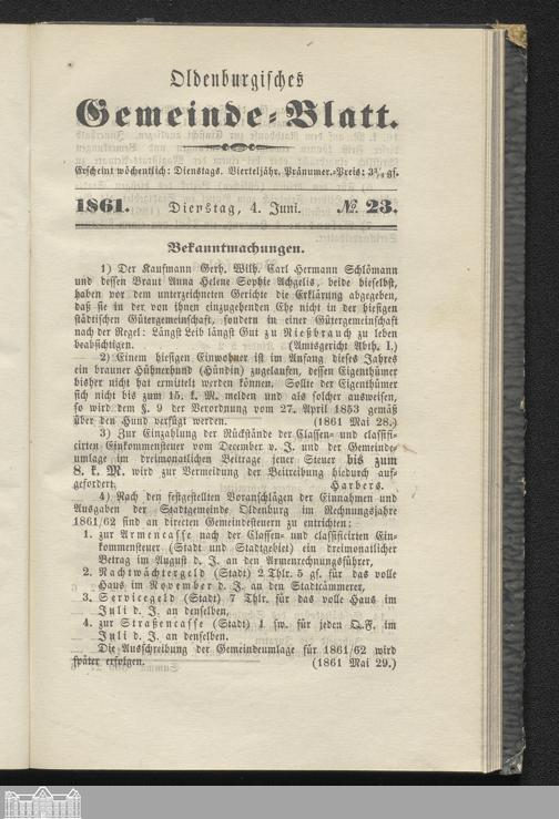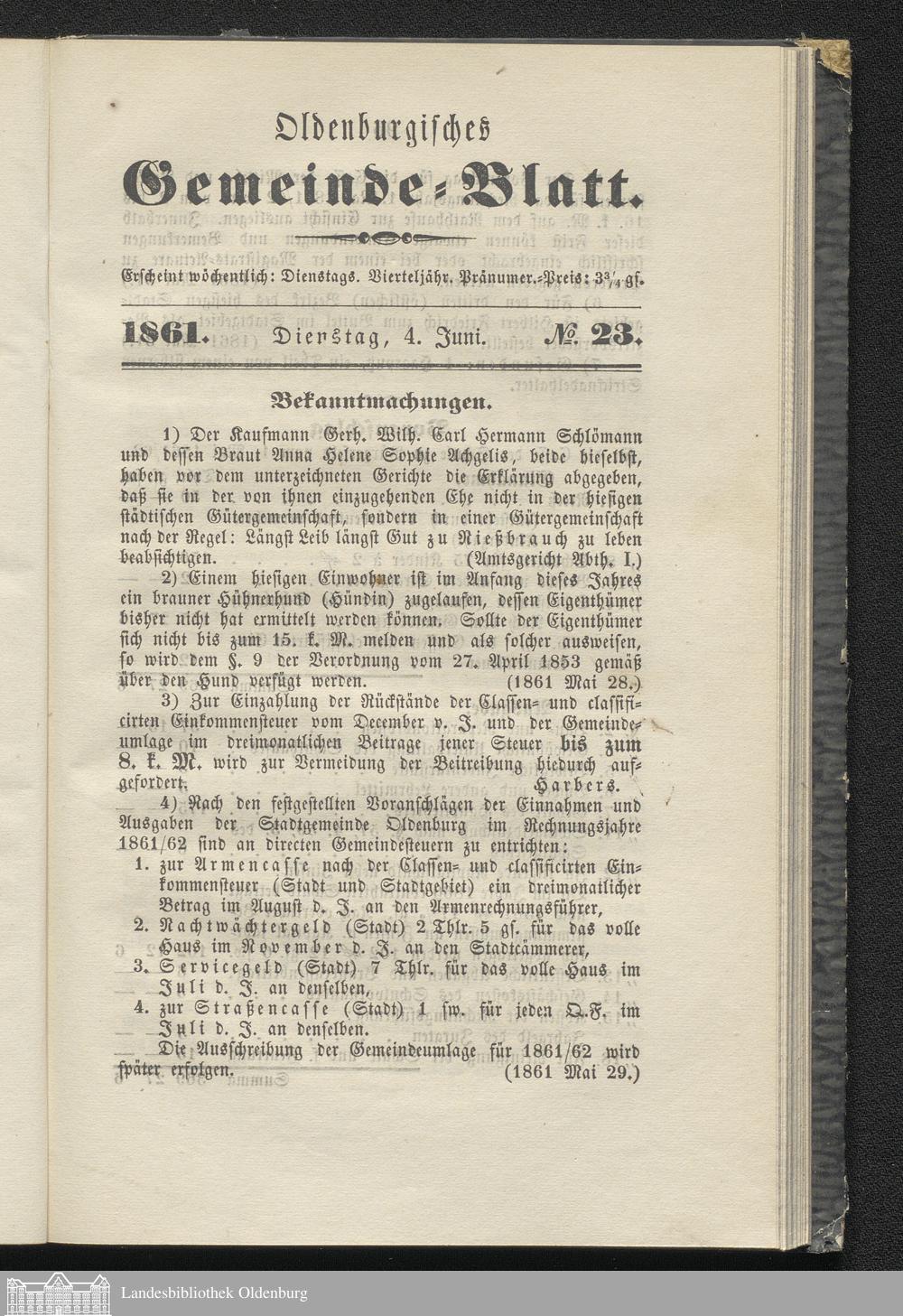 Oldenburgisches Gemeinde-Blatt. 1854-190...