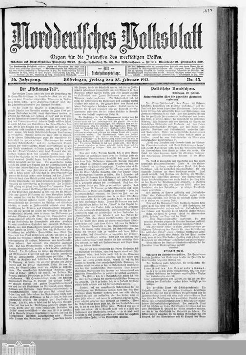 Norddeutsches Volksblatt. 1887-1918