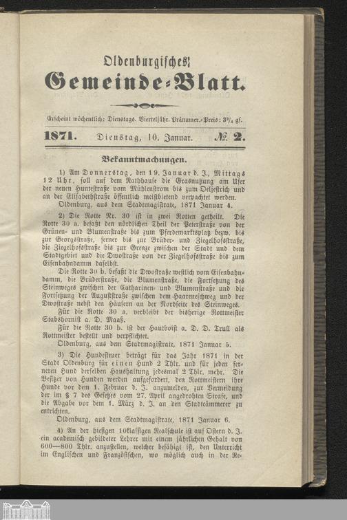 Oldenburgisches Gemeinde-Blatt. 1854-190...