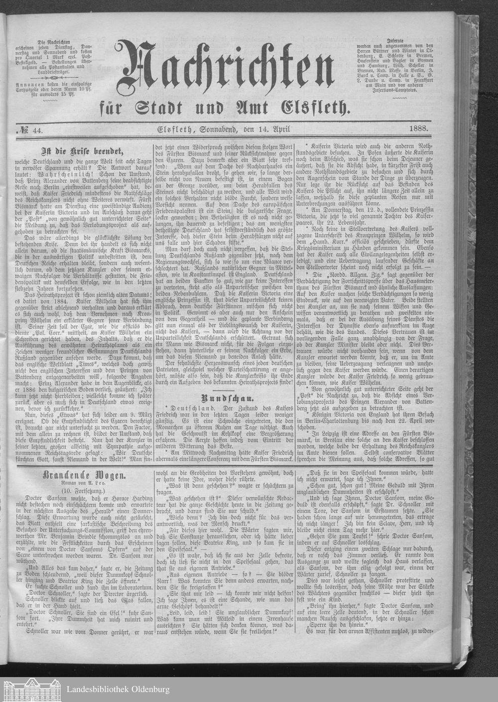 Nachrichten für Stadt und Amt Elsfleth. 1871-1933
