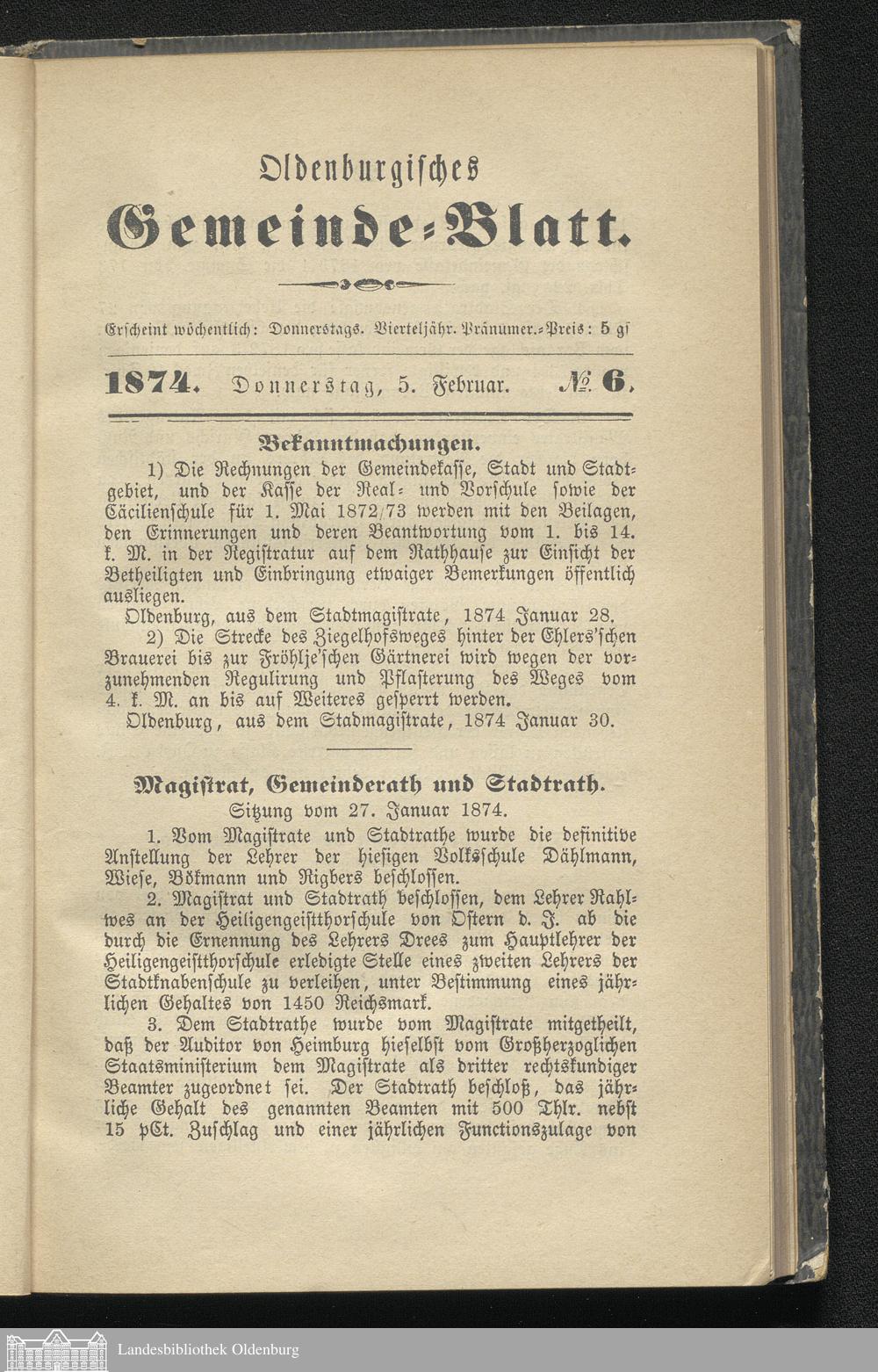 Oldenburgisches Gemeinde-Blatt. 1854-1903