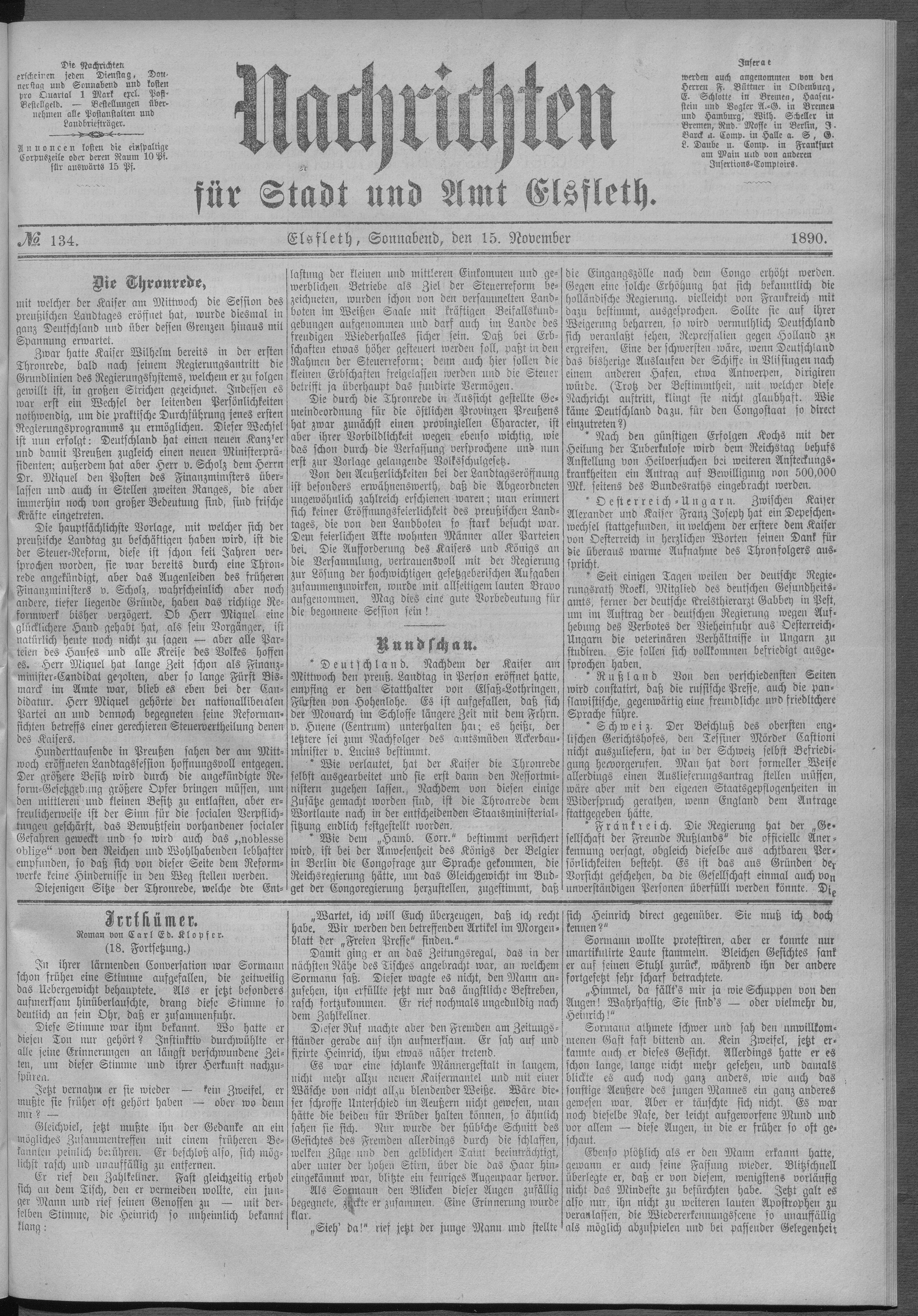 Nachrichten für Stadt und Amt Elsfleth. 1871-1933