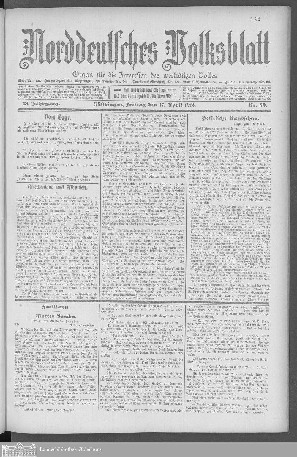 Norddeutsches Volksblatt. 1887-1918