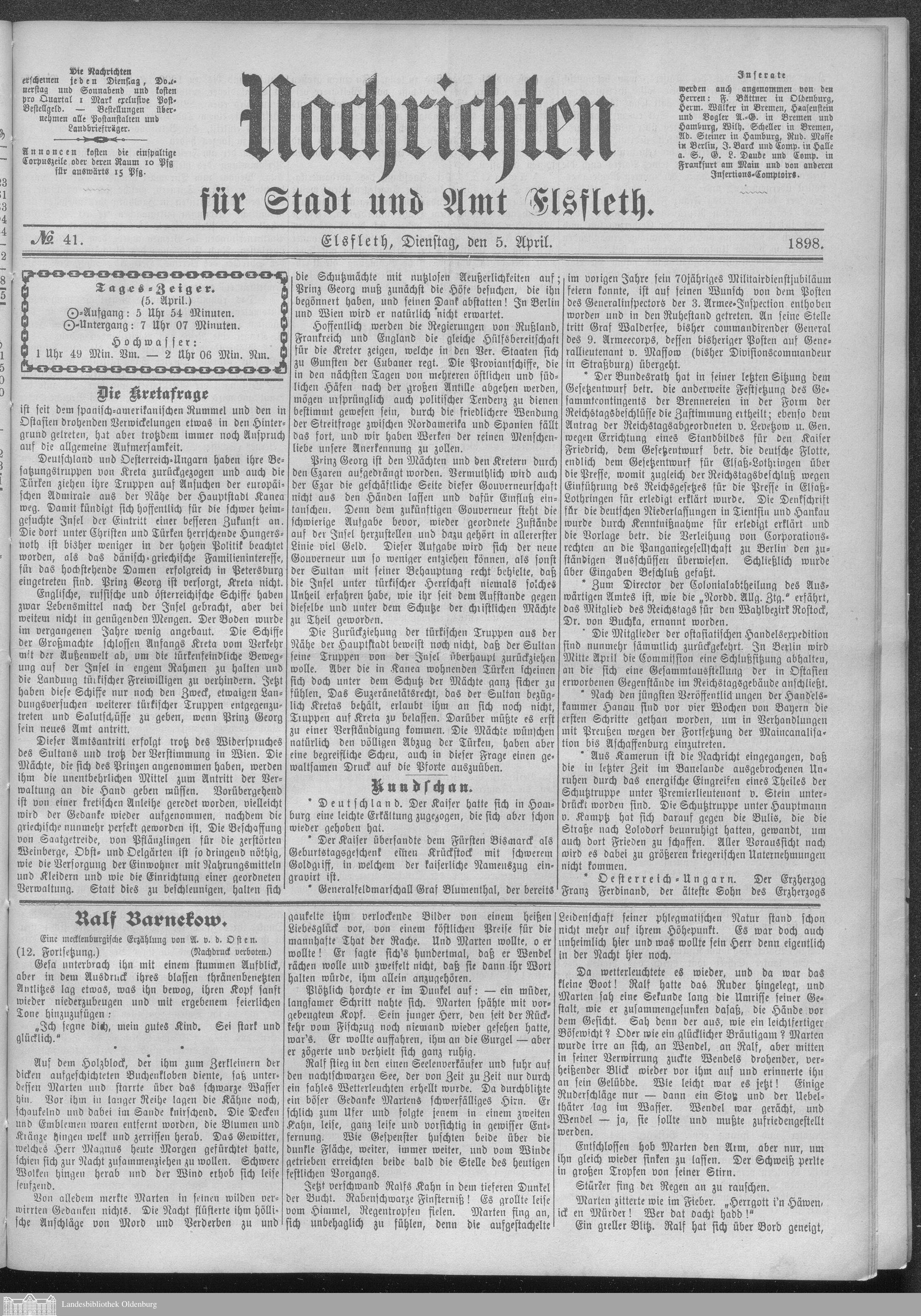 Nachrichten für Stadt und Amt Elsfleth. 1871-1933