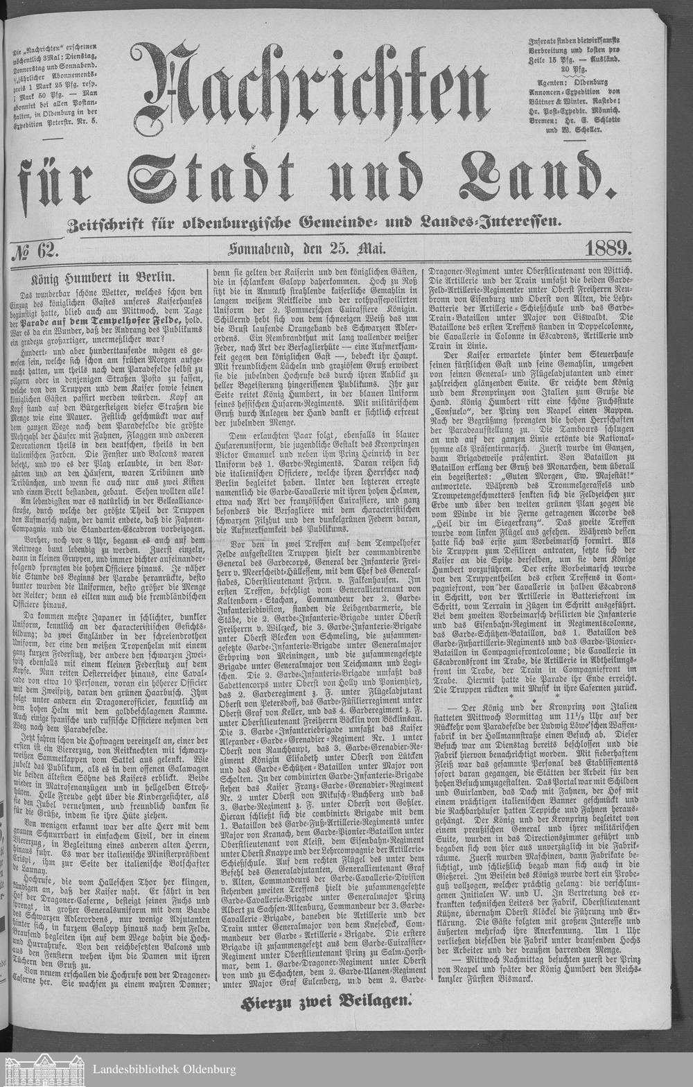 Nachrichten für Stadt und Land. 1866-1938