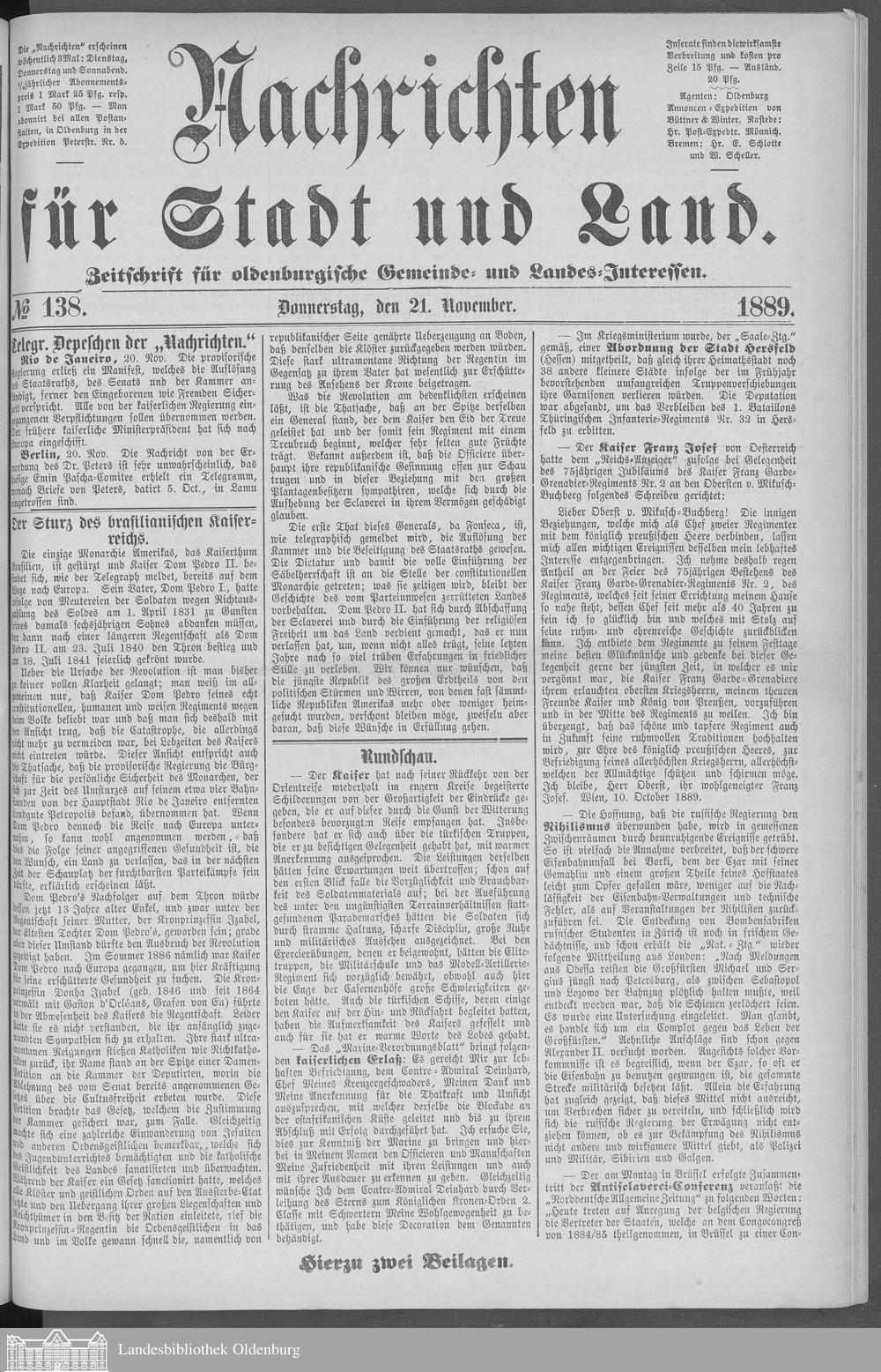 Nachrichten für Stadt und Land. 1866-1938