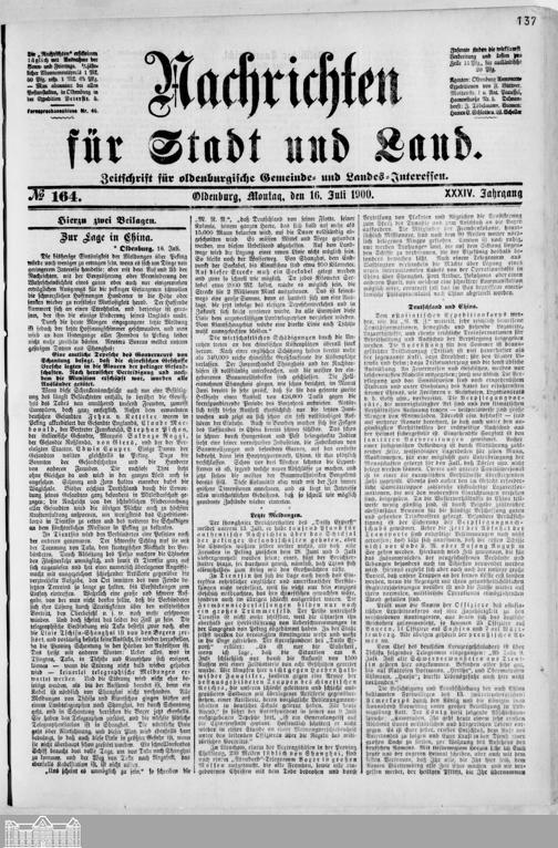 Nachrichten für Stadt und Land. 1866-1938
