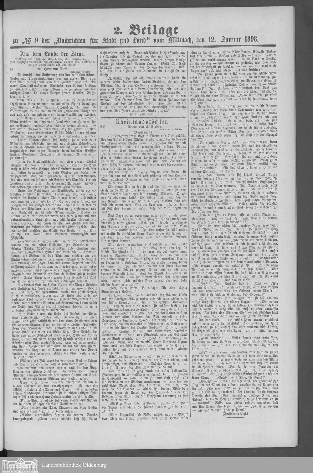Nachrichten für Stadt und Land. 1866-1938