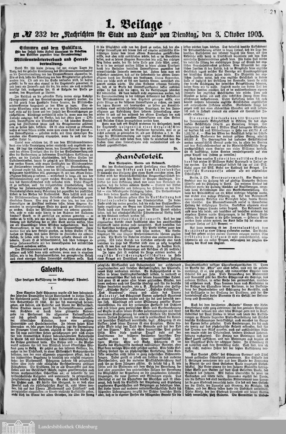 Nachrichten für Stadt und Land. 1866-193...