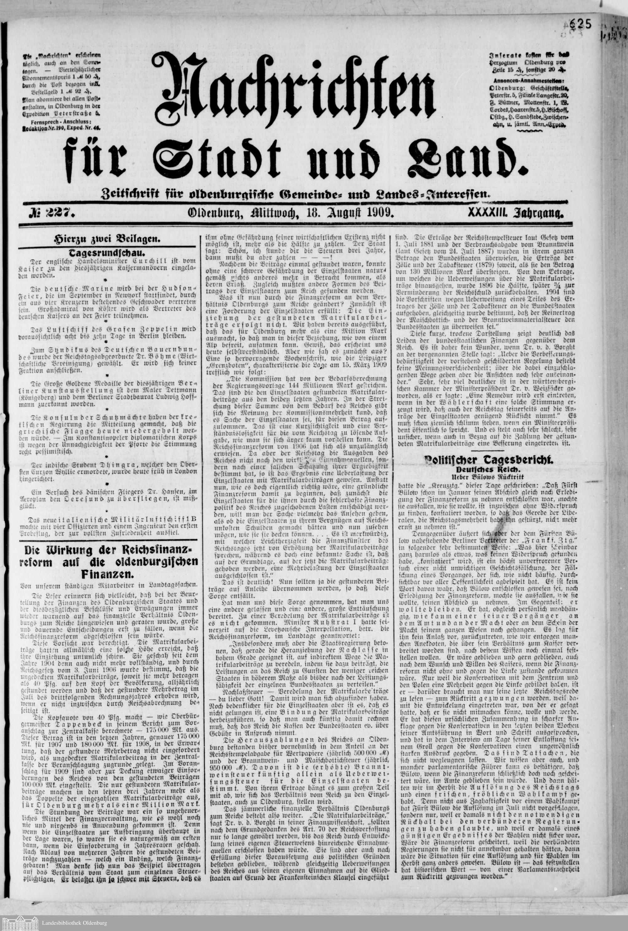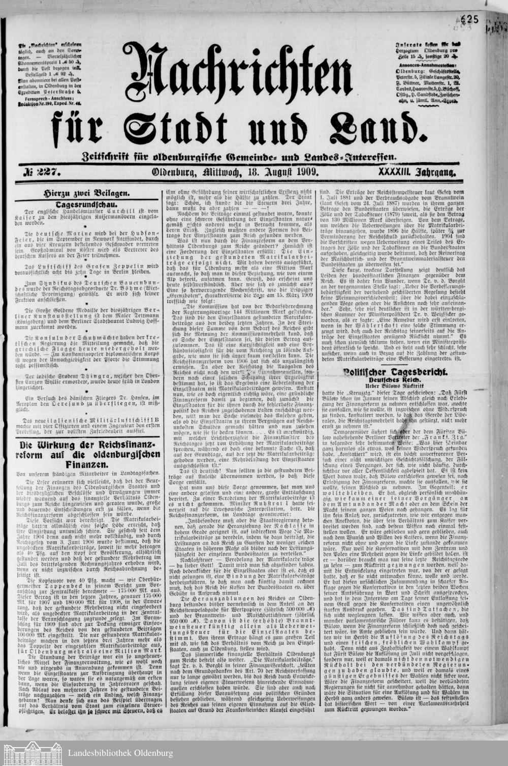 Nachrichten für Stadt und Land. 1866-193...