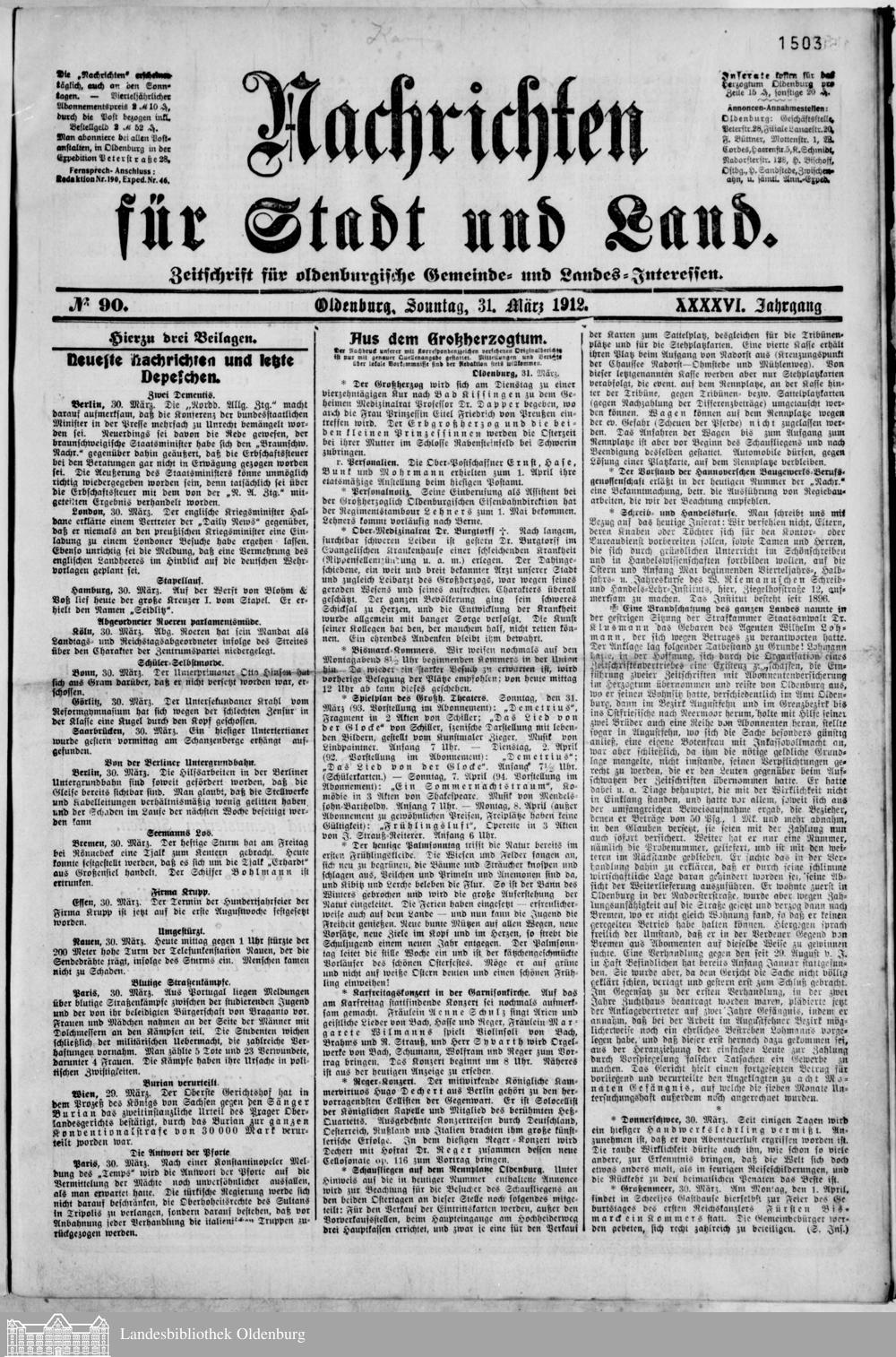 Nachrichten für Stadt und Land. 1866-1938