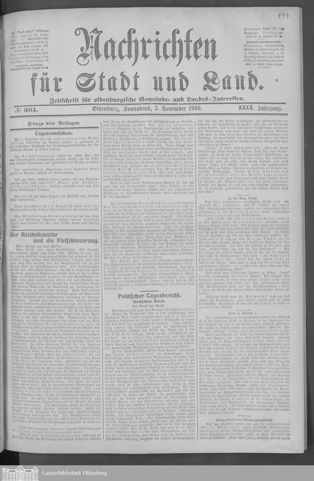 Nachrichten für Stadt und Land. 1866-1938