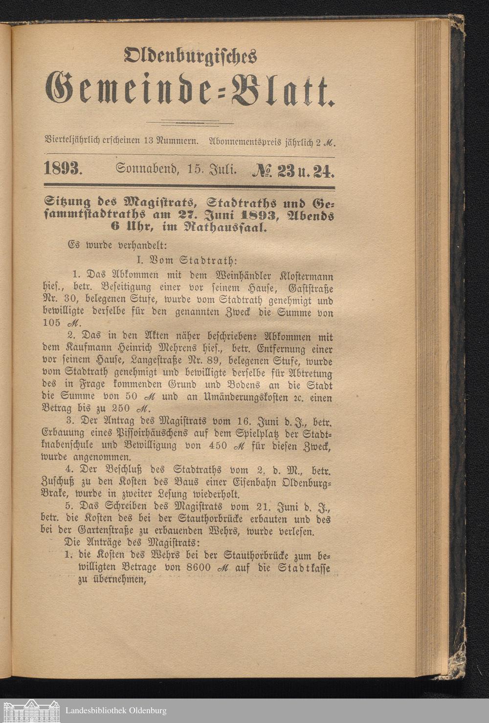 Oldenburgisches Gemeinde-Blatt. 1854-1903