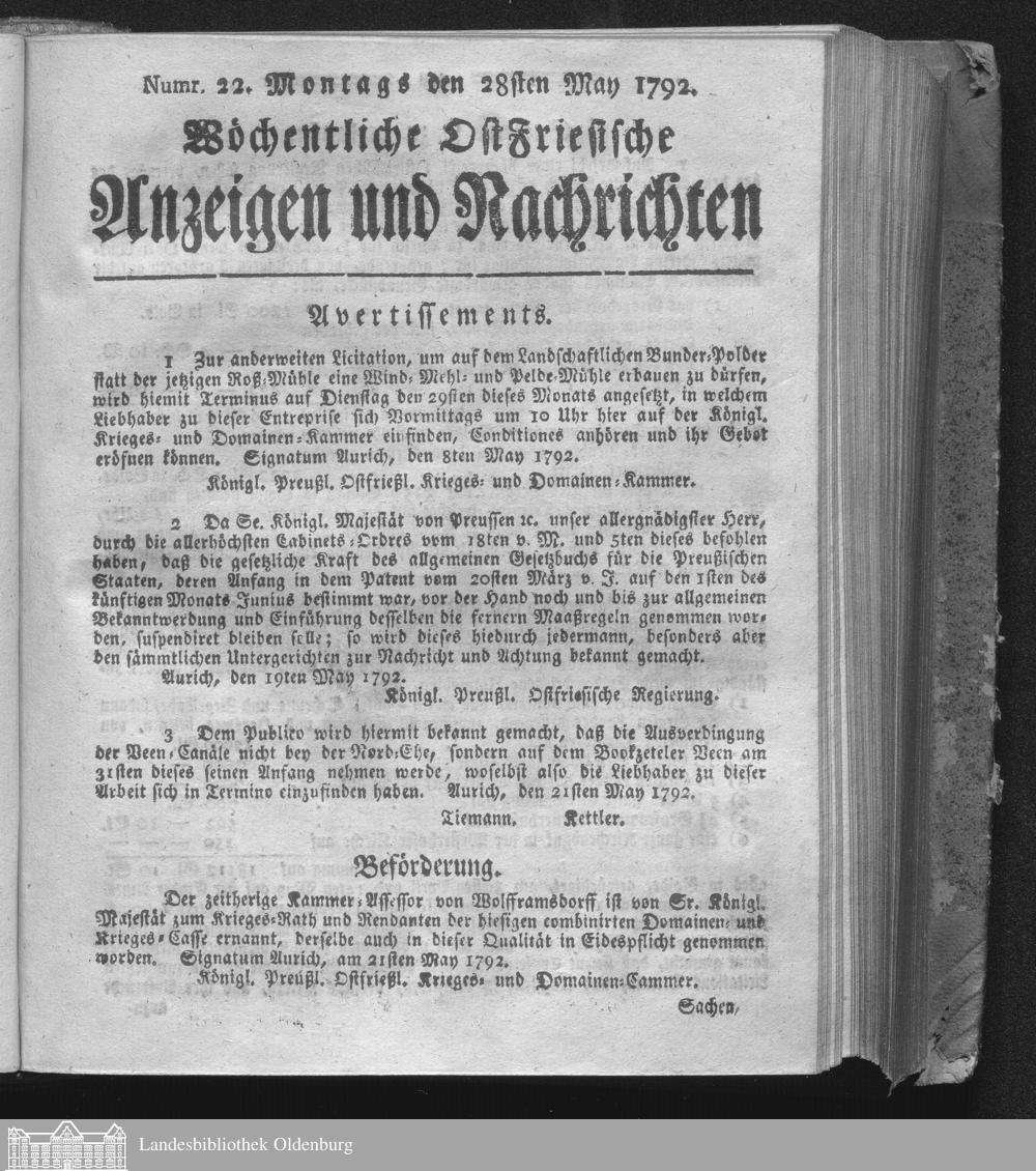 Wöchentliche Ostfriesische Anzeigen und Nachrichten....