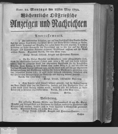Wöchentliche Ostfriesische Anzeigen und Nachrichten. 1747-1808