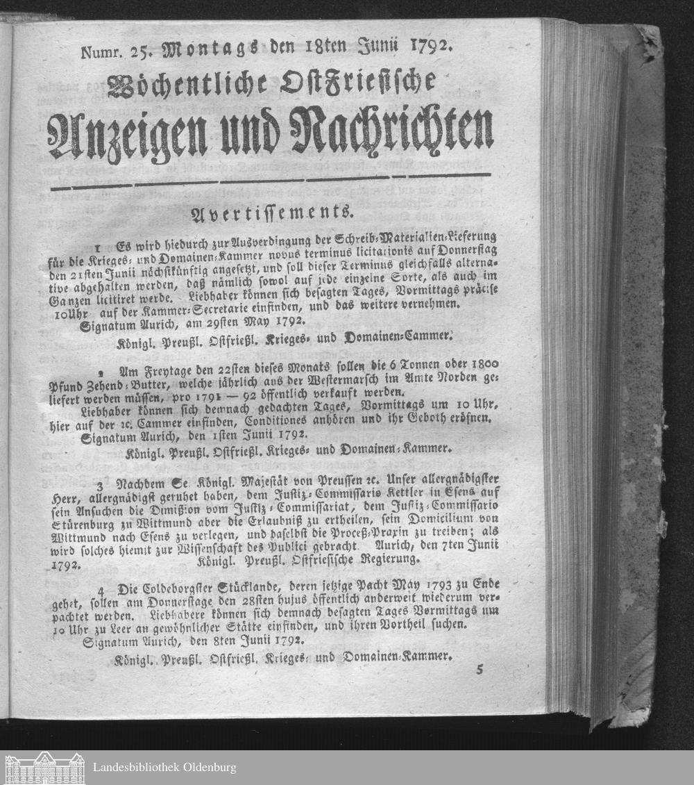Wöchentliche Ostfriesische Anzeigen und Nachrichten....