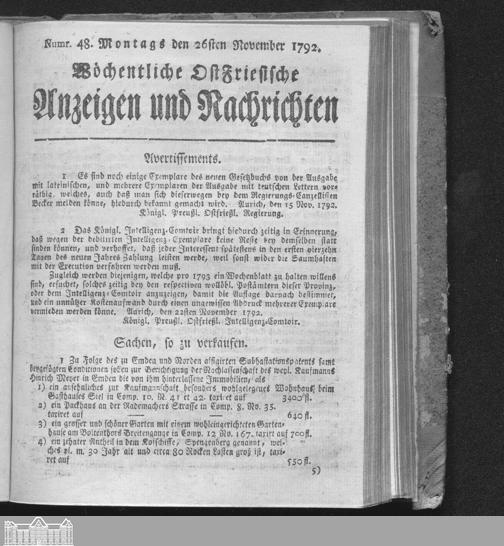 Wöchentliche Ostfriesische Anzeigen und Nachrichten. 1747-1808