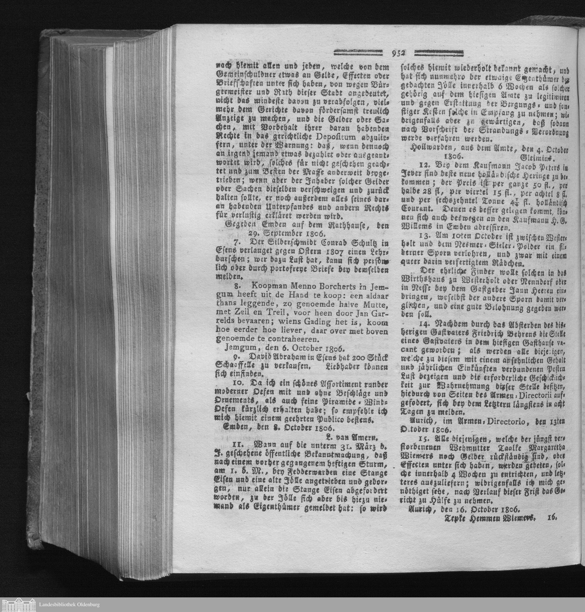 Wöchentliche Ostfriesische Anzeigen und Nachrichten. 1747-1808