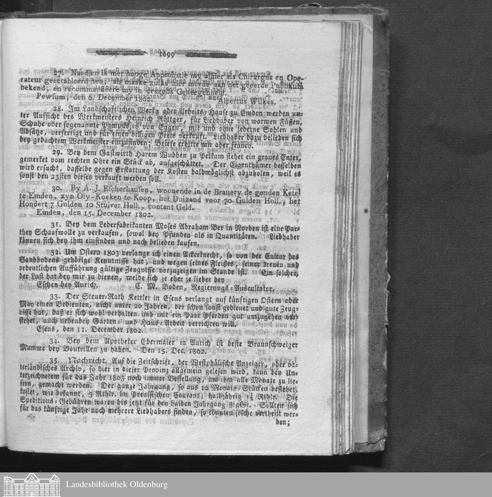 Wöchentliche Ostfriesische Anzeigen und Nachrichten....