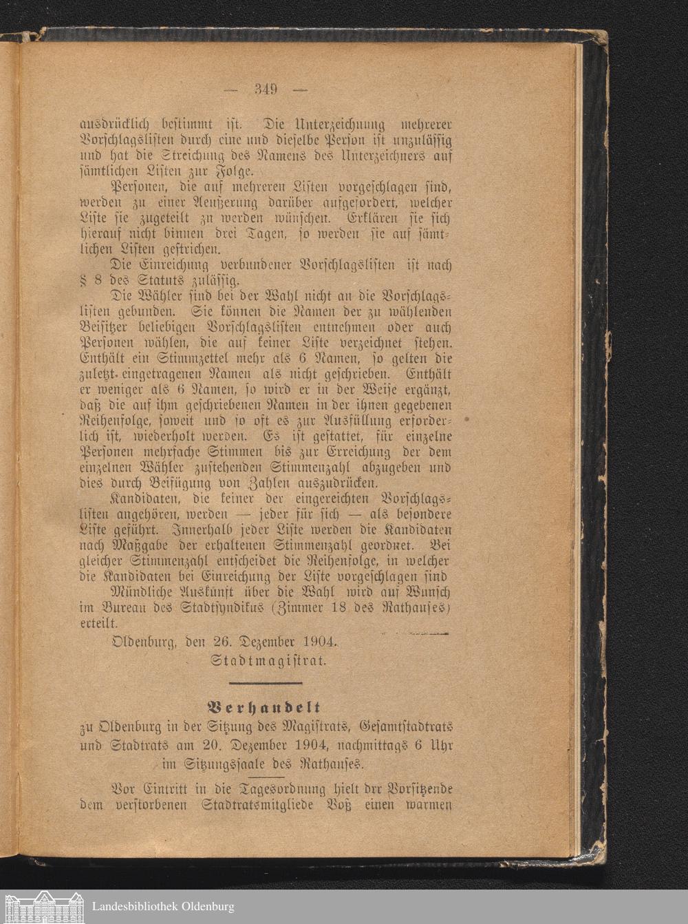 Gemeindeblatt der Stadt Oldenburg. 1904-1920