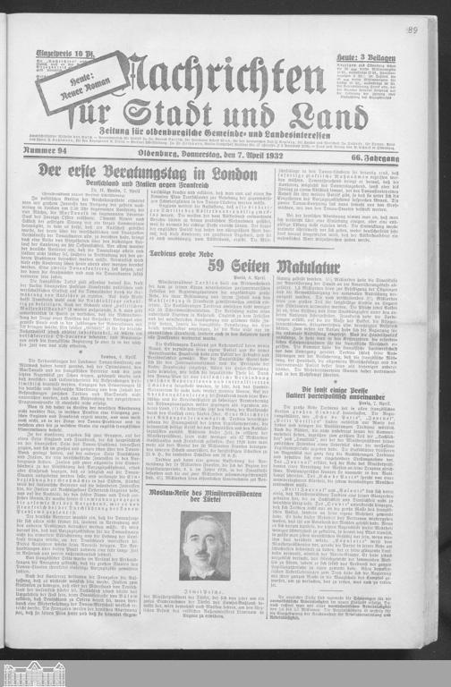 Nachrichten für Stadt und Land. 1866-193...