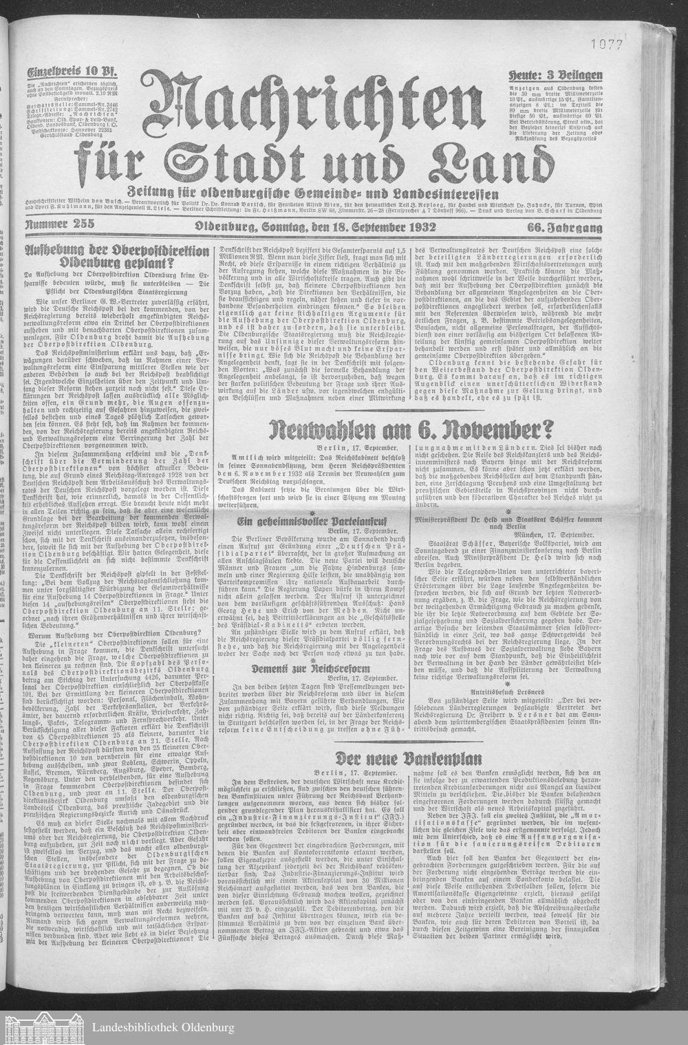 Nachrichten für Stadt und Land. 1866-193...