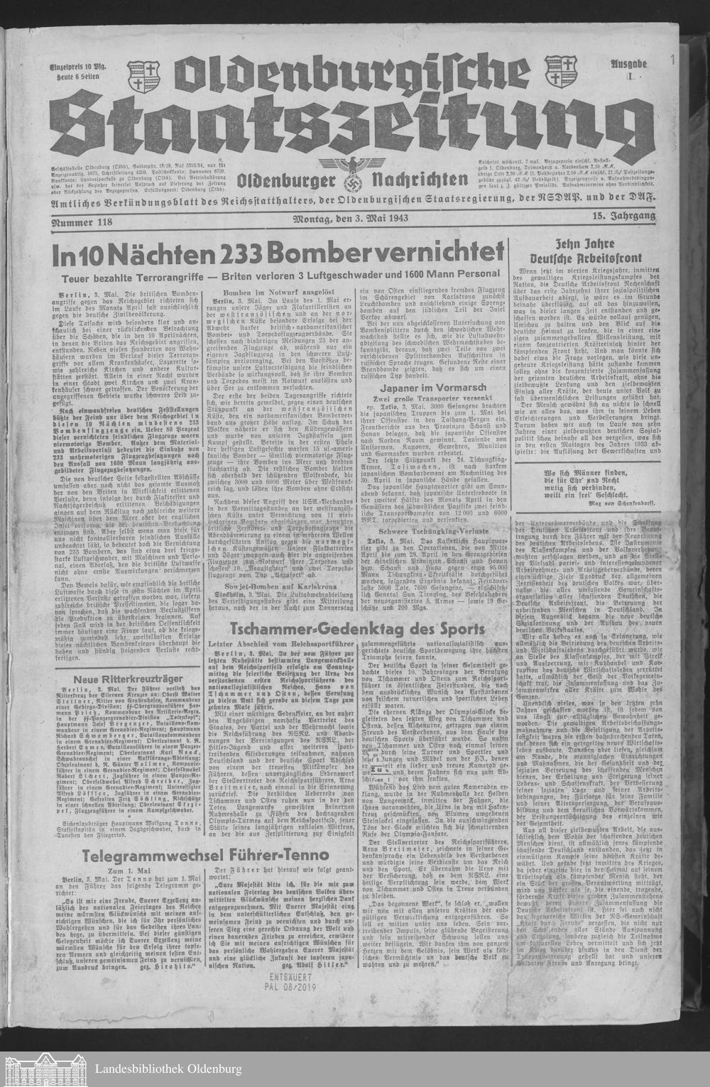 Oldenburgische Staatszeitung. 1933-1945