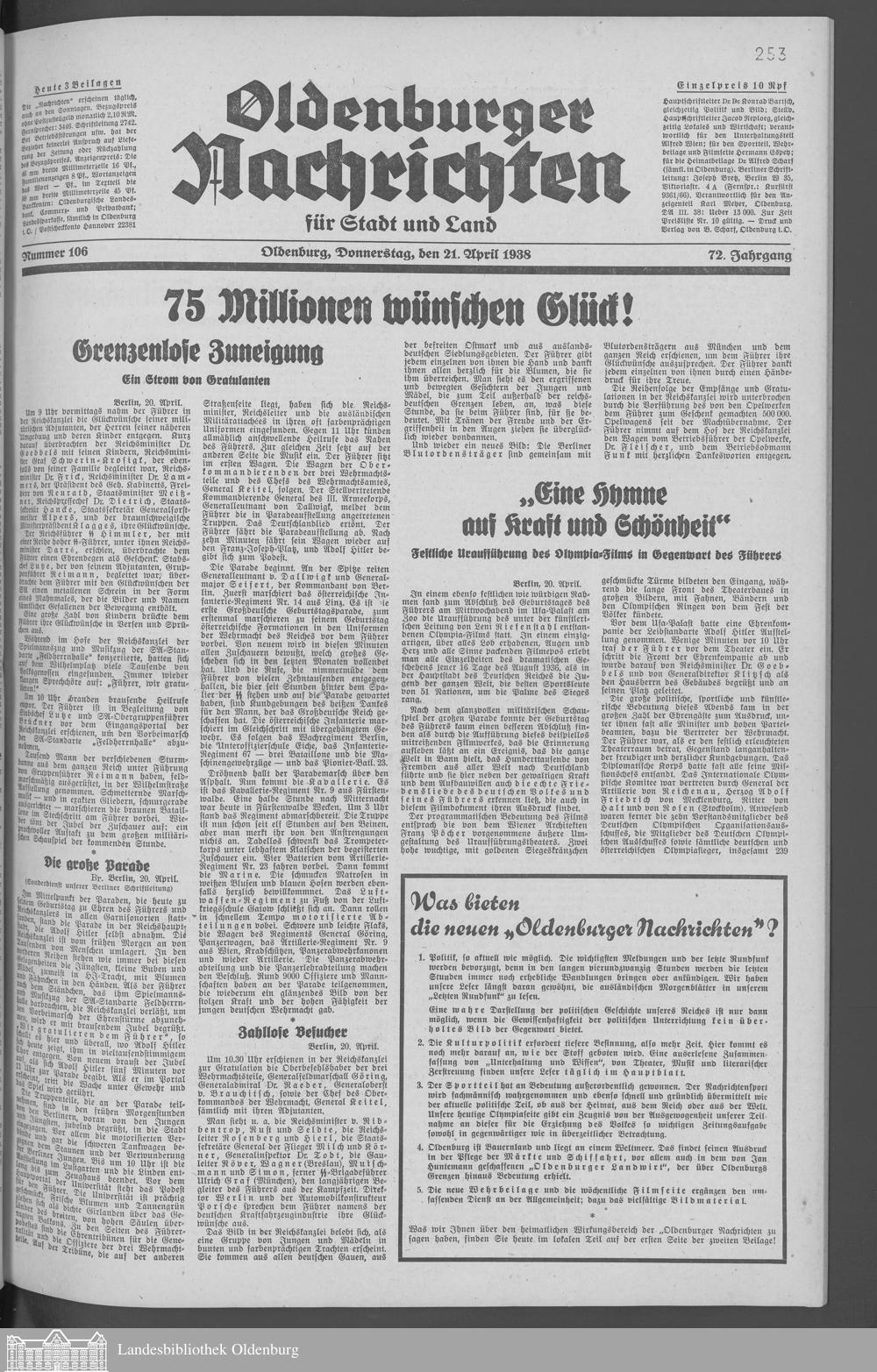 Oldenburger Nachrichten für Stadt und Land. 1938-1939