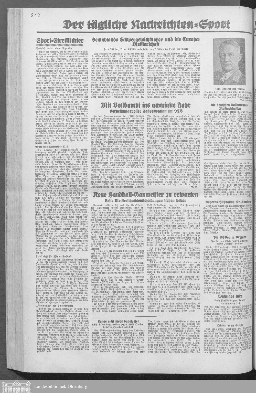 Oldenburger Nachrichten für Stadt und Land. 1938-1939
