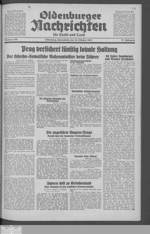 Oldenburger Nachrichten für Stadt und Land. 1938-1939