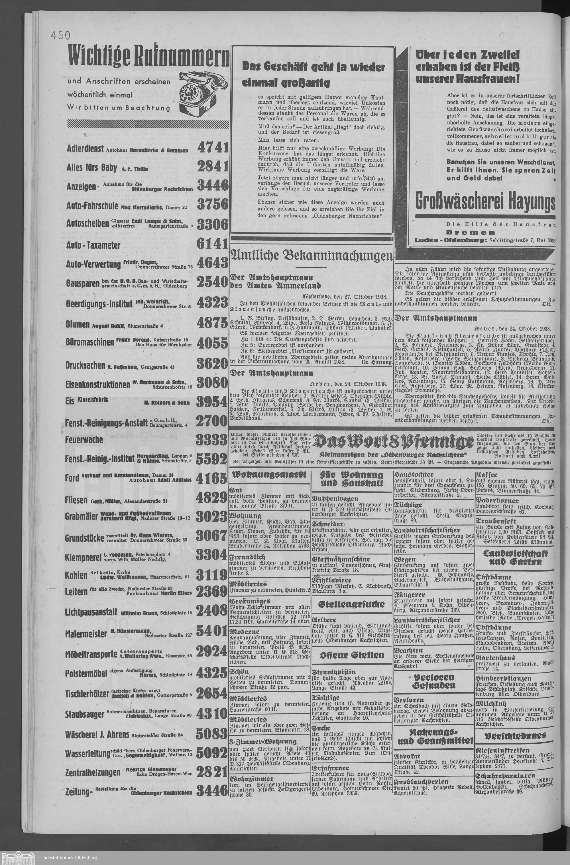 Oldenburger Nachrichten für Stadt und Land. 1938-1939