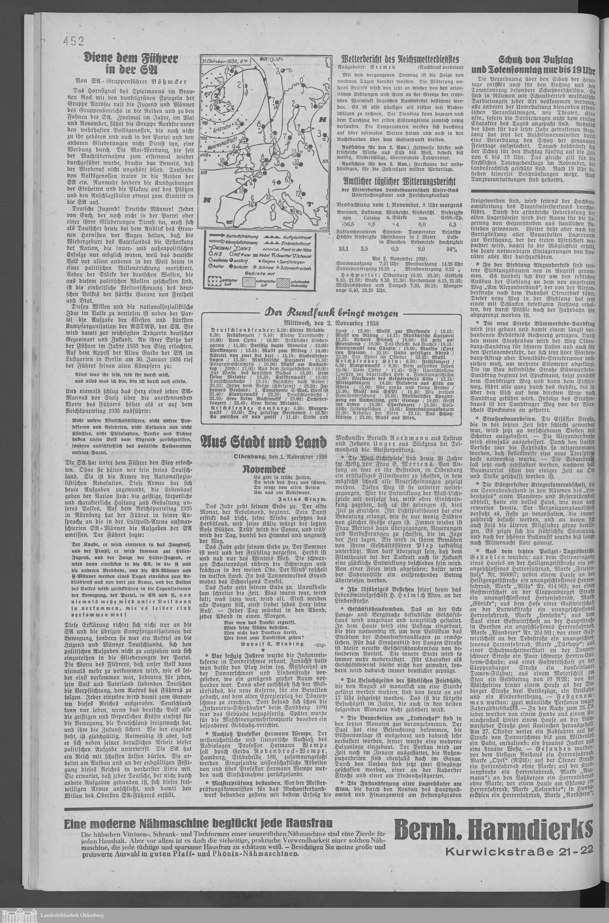 Oldenburger Nachrichten für Stadt und Land. 1938-1939