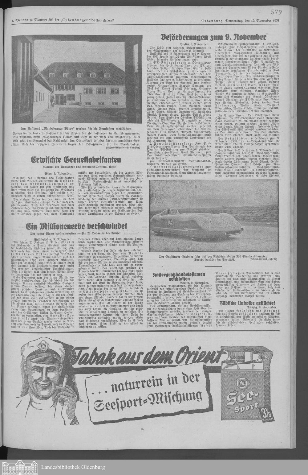Oldenburger Nachrichten für Stadt und Land. 1938-1939