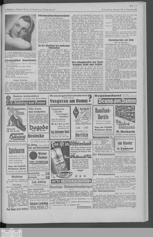 Oldenburger Nachrichten für Stadt und Land. 1938-1939