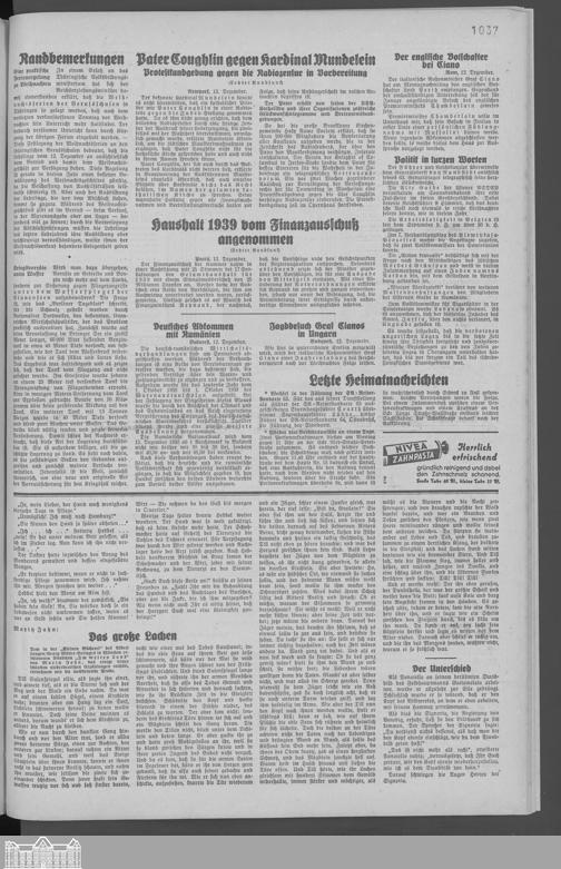 Oldenburger Nachrichten für Stadt und Land. 1938-1939