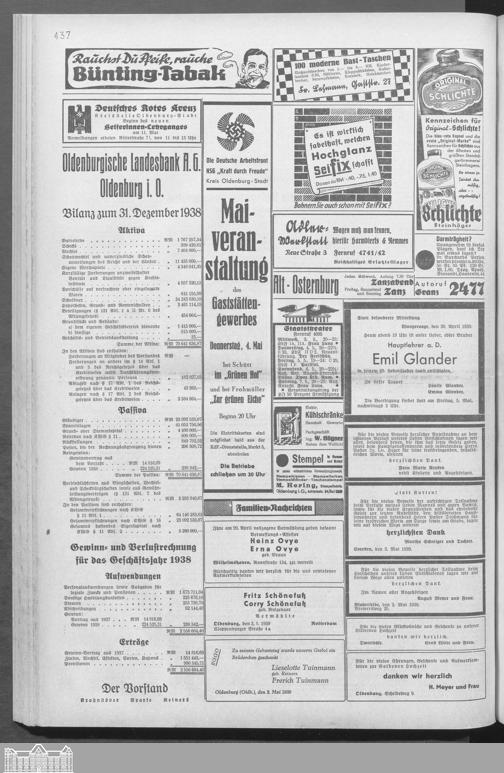 Oldenburger Nachrichten für Stadt und Land. 1938-1939