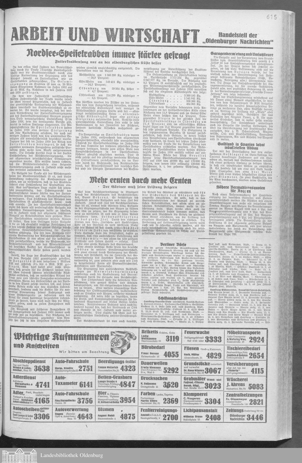 Oldenburger Nachrichten für Stadt und Land. 1938-1939