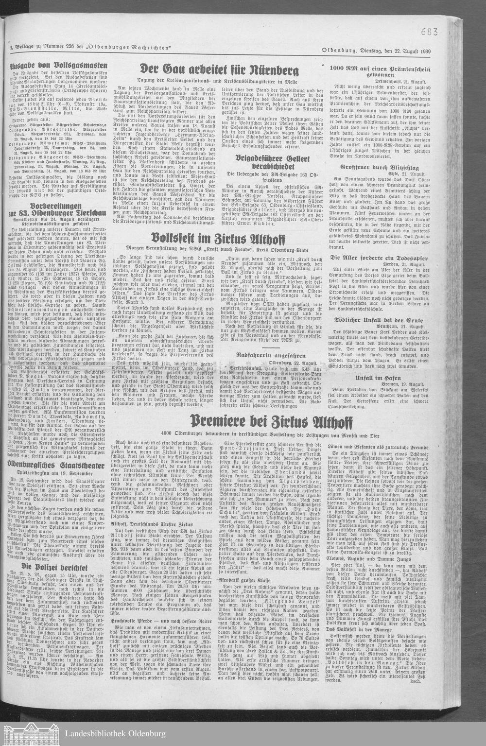 Oldenburger Nachrichten für Stadt und Land. 1938-1939