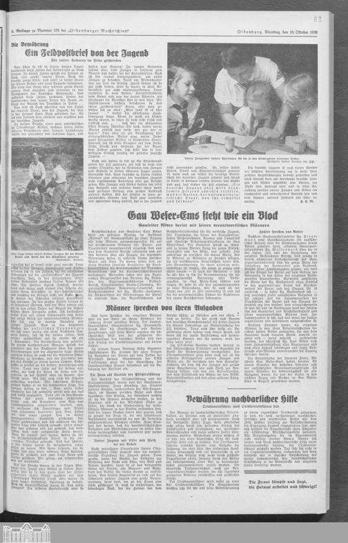 Oldenburger Nachrichten für Stadt und Land. 1938-1939