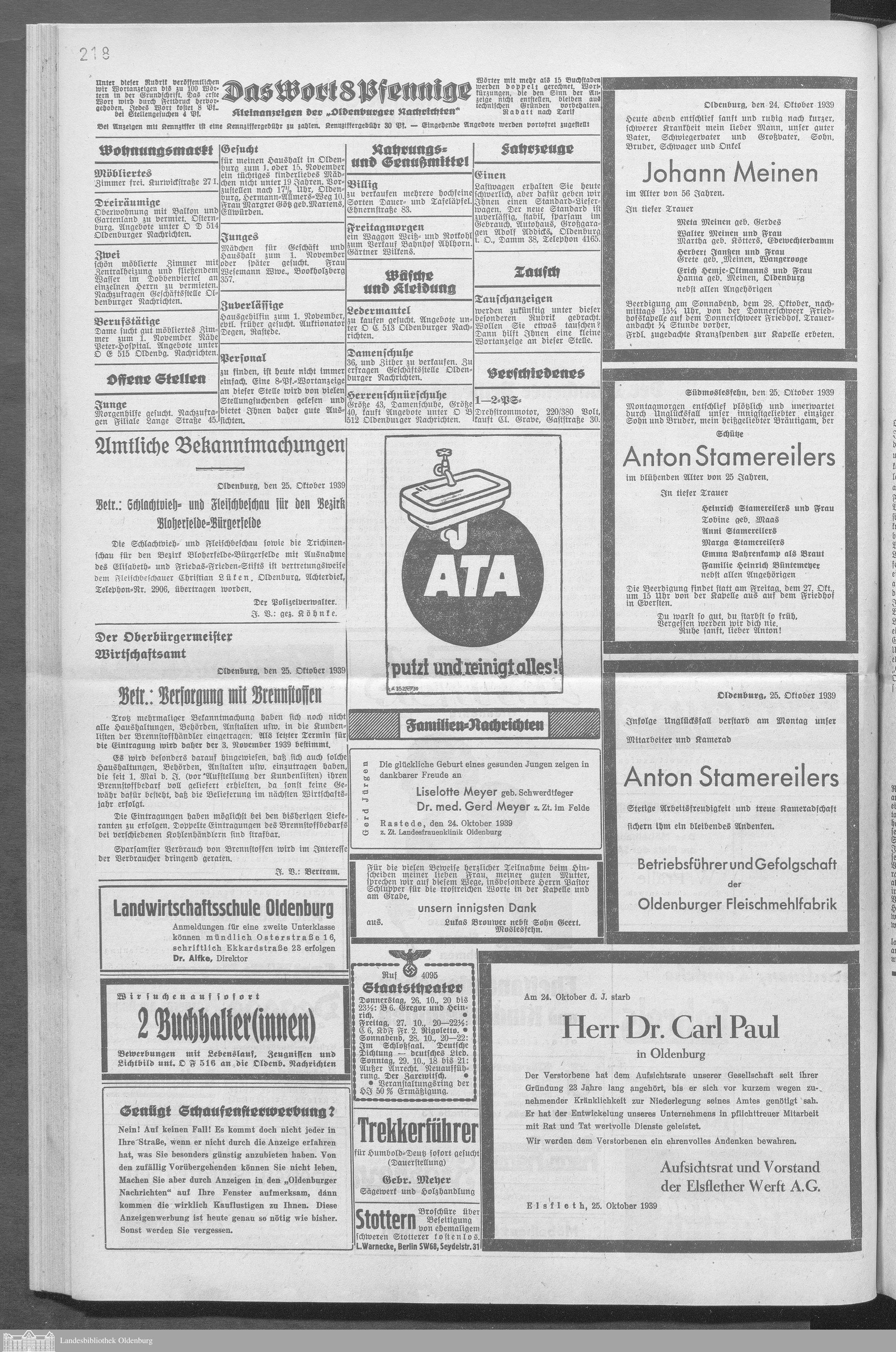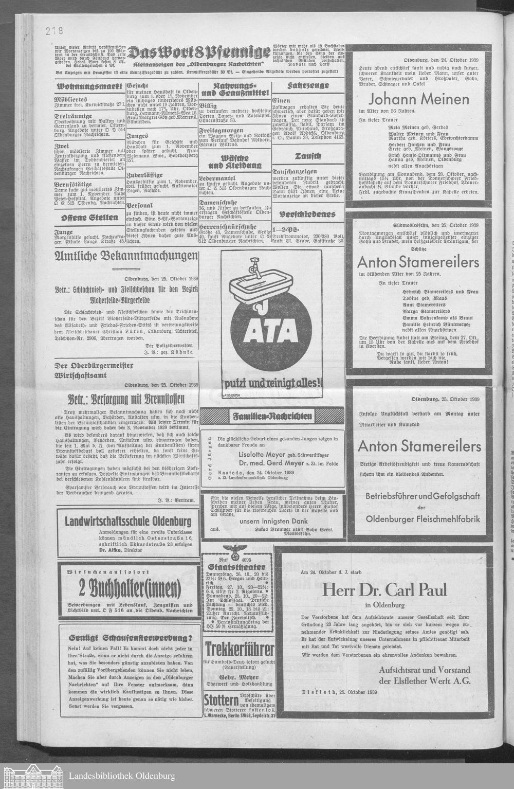 Oldenburger Nachrichten für Stadt und Land. 1938-1939