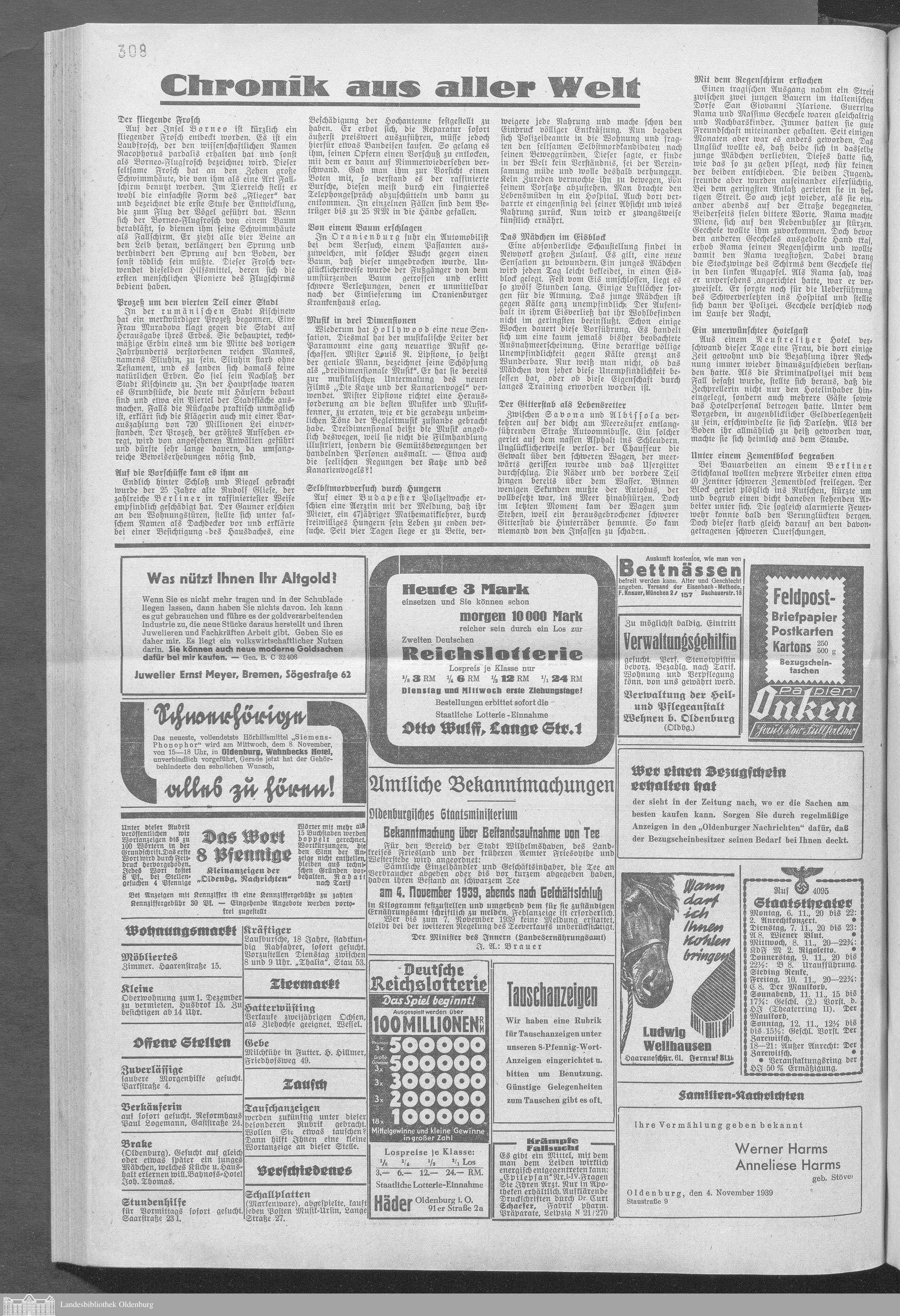 Oldenburger Nachrichten für Stadt und Land. 1938-1939