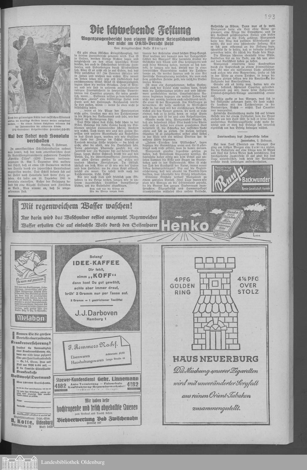 Oldenburger Nachrichten. 1939-1954