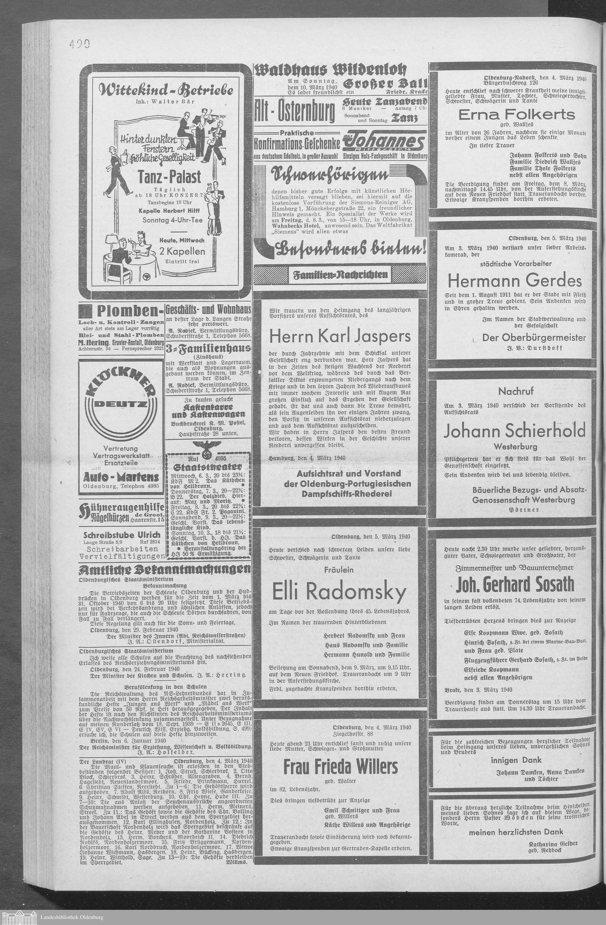 Oldenburger Nachrichten. 1939-1954