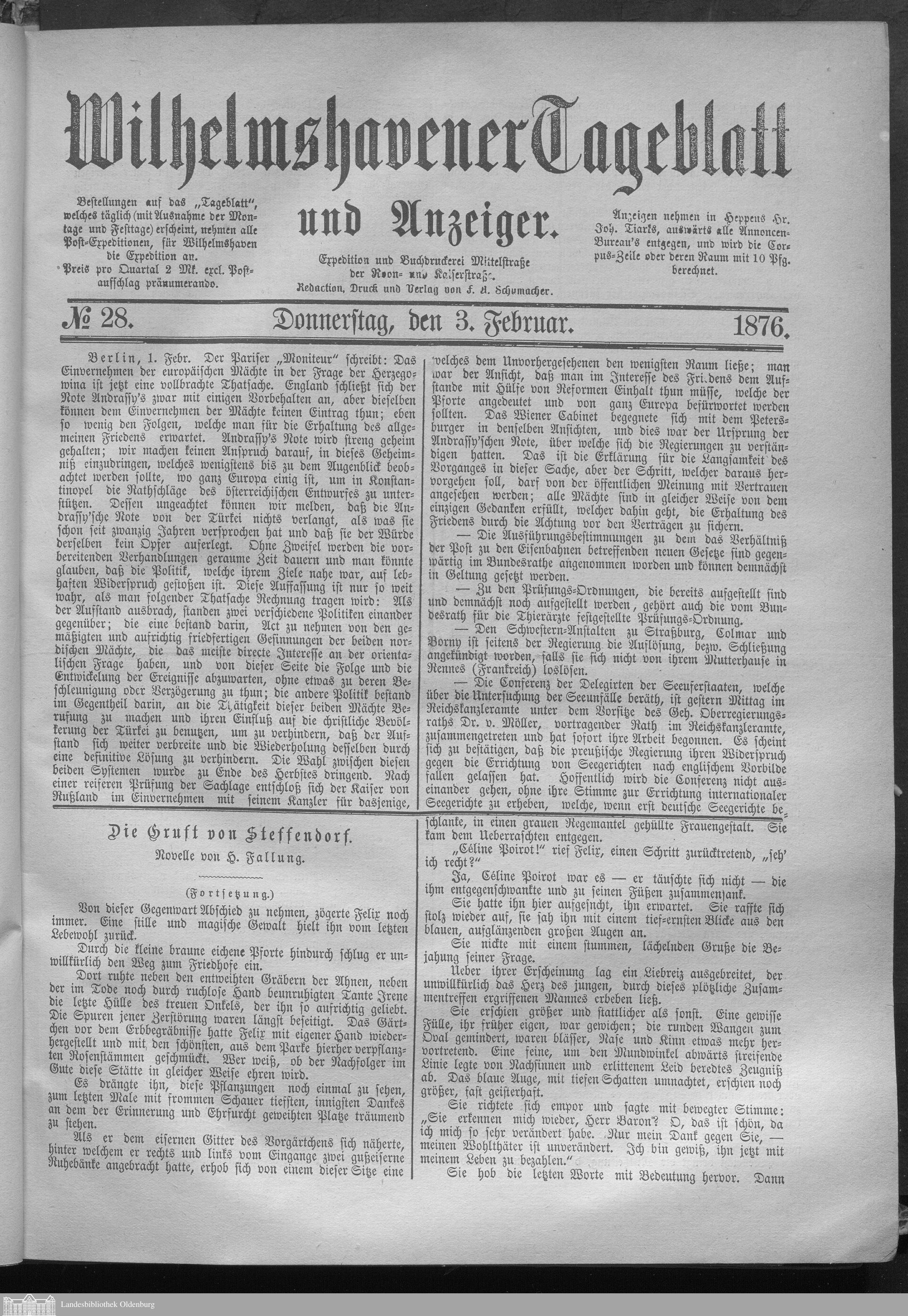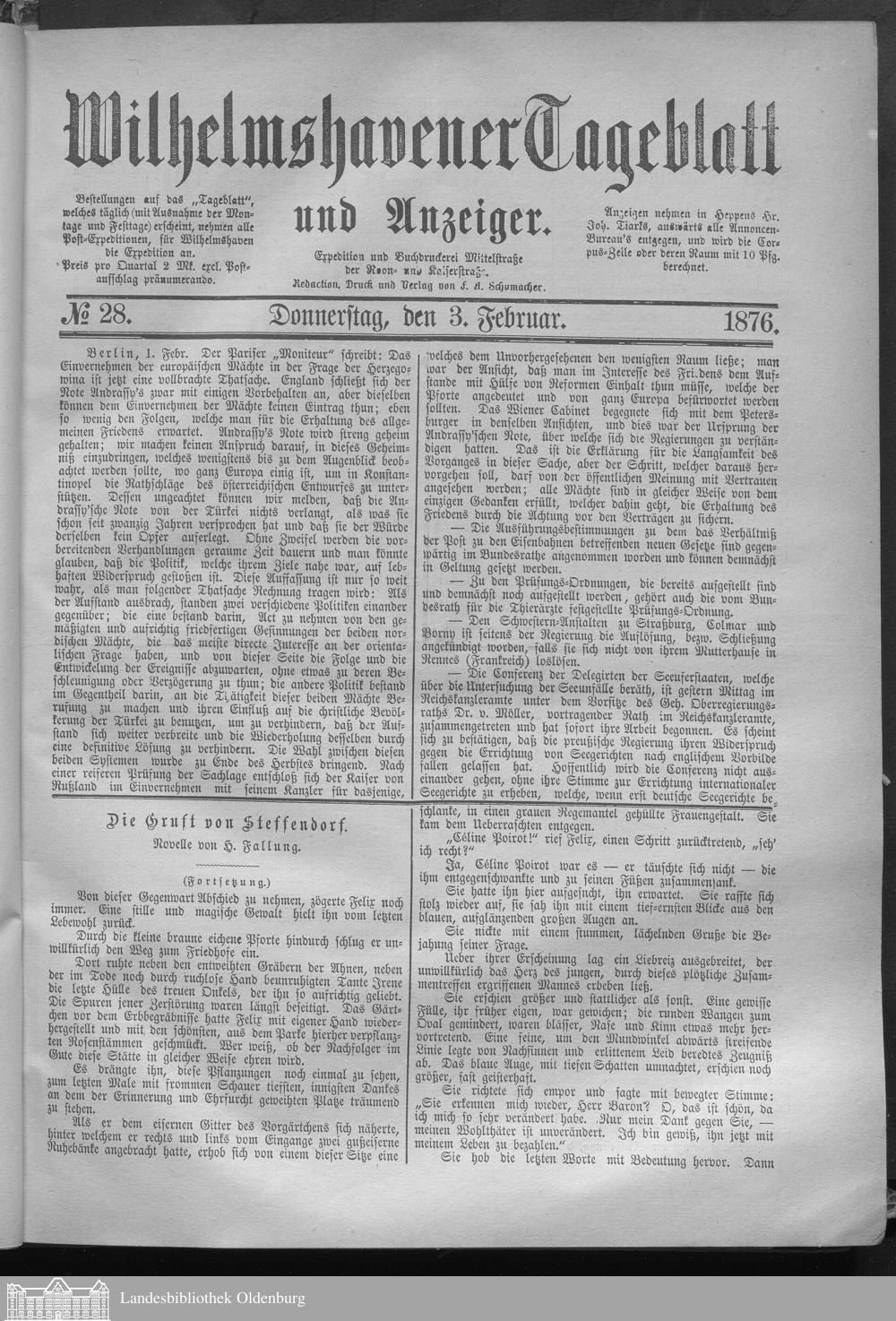 Wilhelmshavener Tageblatt und Anzeiger. 1876-1880