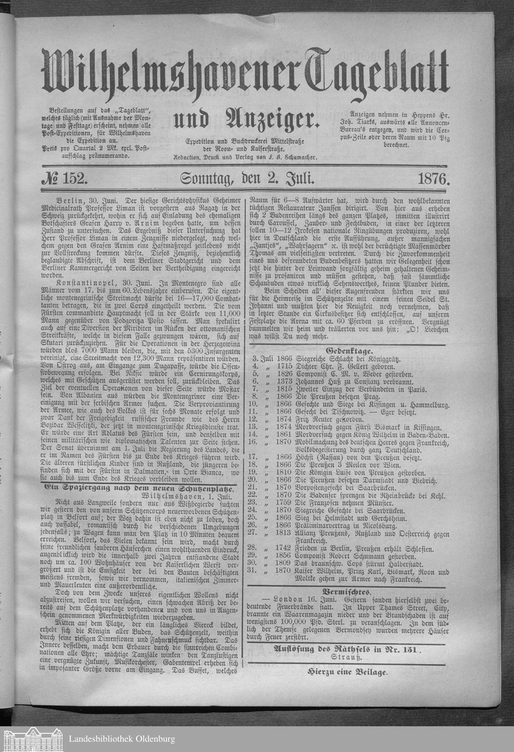 Wilhelmshavener Tageblatt und Anzeiger. 1876-1880